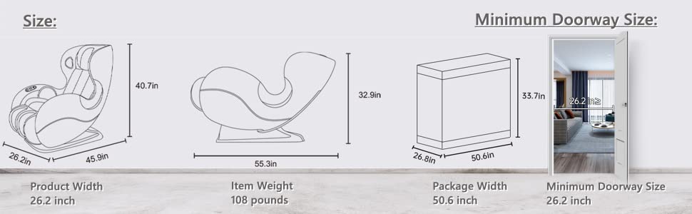 • 【Zero-Gravity Massage Chair & Space Saving】The Zero-Gravity Massage gives you the best massage position to free your body, can reduce the burden of heart and back pain, stimulate blood circulation. The massage chair has 2 levels of zero gravity angles for you to choose. Space saving design: wall clearance of 2.8 inches